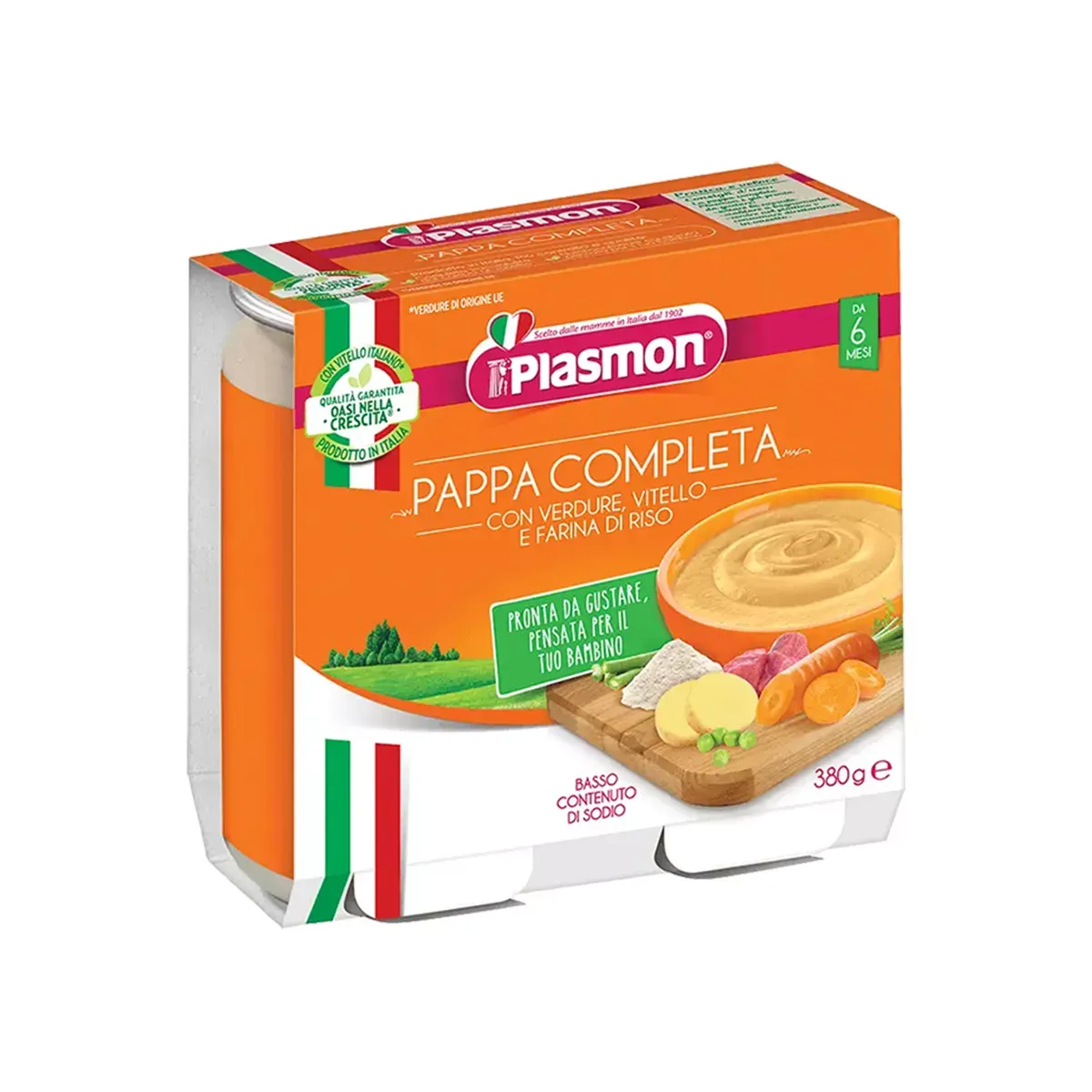 Supe viçi Plasmon me perime, për foshnjat mbi 6 muaj, një vakt i pasur me proteina, vitaminë dhe minerale.
